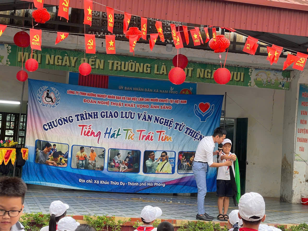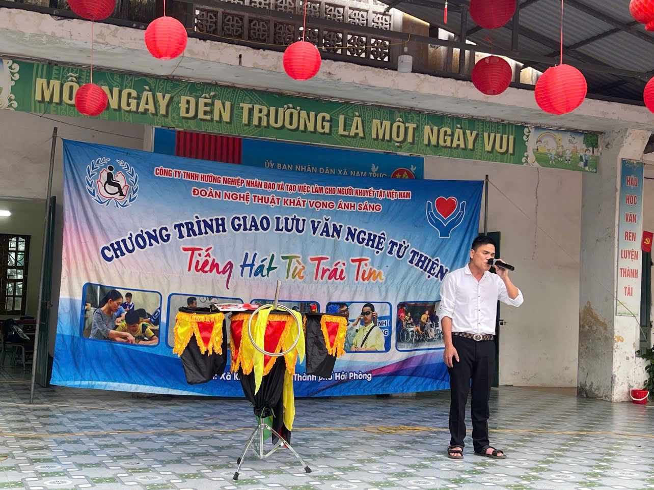 Thực hiện công văn số 641/SGDĐT- CTHSSV về việc gặp gỡ giao lưu văn hoá, văn nghệ nghệ thuật tình thương của Sở GD-ĐT tỉnh Ninh Bình, sáng thứ tư ngày 01/04/2026, tại sân trường Tiểu học Nam Giang, đã diễn ra chương trình giao lưu văn hóa, văn nghệ với chủ đề ✨ “Tiếng hát từ trái tim” ✨ do Công ty TNHH hướng nghiệp nhân đạo và tạo việc làm cho người khuyết tật Việt Nam tổ chức đã diễn ra trong không khí ấm áp, gần gũi và đầy xúc động.