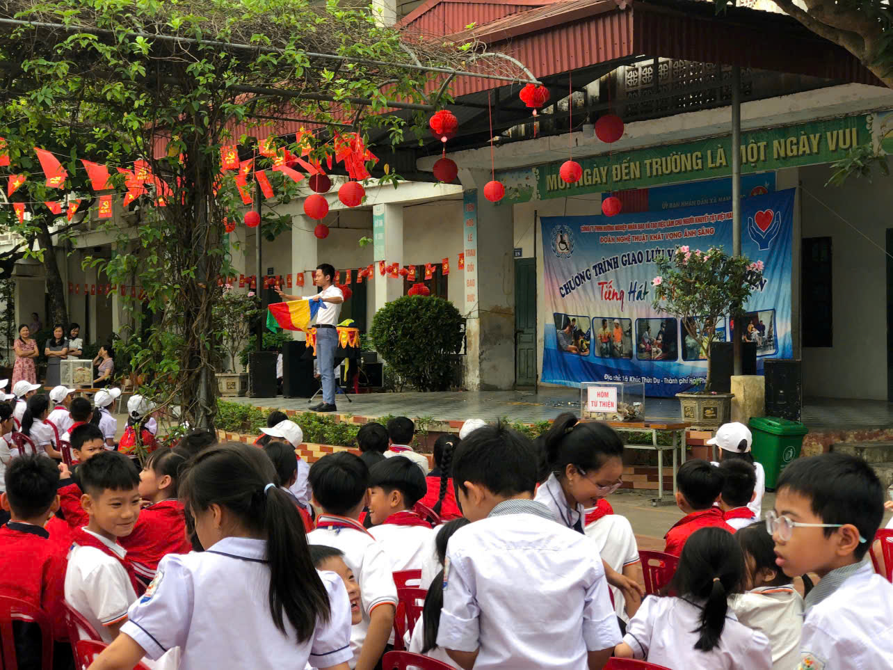 🎶 Những tiết mục văn nghệ chân thành, giàu cảm xúc không chỉ mang đến niềm vui mà còn chạm đến trái tim của các bạn học sinh. Đặc biệt là những tiết mục ảo thuật đã mang đến không khí rất vui vẻ, tràn ngập tiếng cười, tiếng hò reo của các bạn học sinh. Qua đó, các em học sinh hiểu hơn về nghị lực sống mạnh mẽ của những bạn nhỏ kém may mắn và biết yêu thương, sẻ chia và trân trọng những điều giản dị trong cuộc sống.